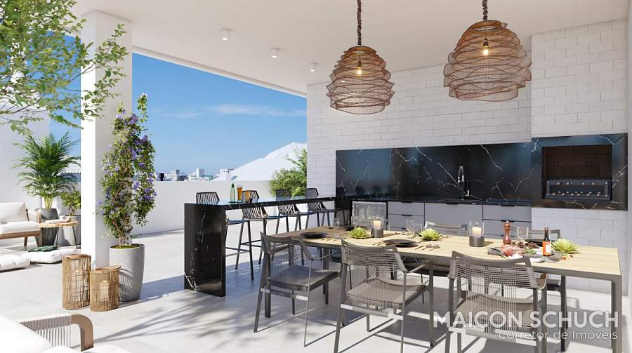 - Cozinha, sala de estar e sala de jantar em um ambiente todo integrado;
