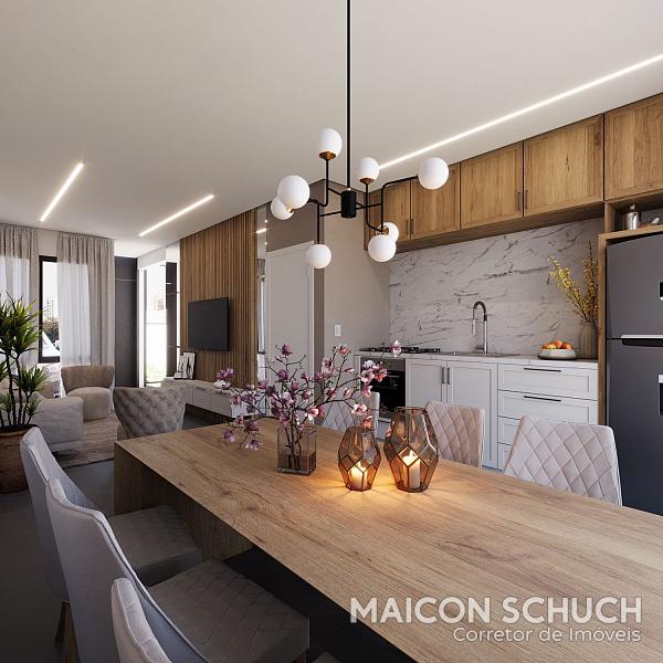 Unidade nº 02: composta de duas suítes, sendo uma com sacada, sala de estar, sala de jantar/cozinha, lavabo, área gourmet c/ churrasqueira, lavanderia e uma vaga de garagem descoberta.